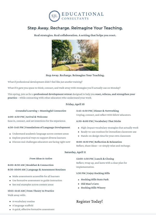 April Retreat for Teachers